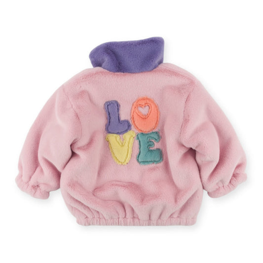 Love Hearts Pockets Faux Fur Jacket - Cotton Candy