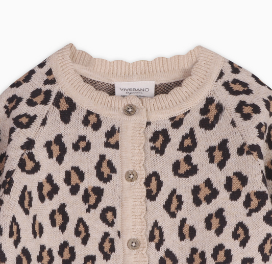 Leopard Jacquard Sweater Knit Baby Cardigan - Oatmeal Heather