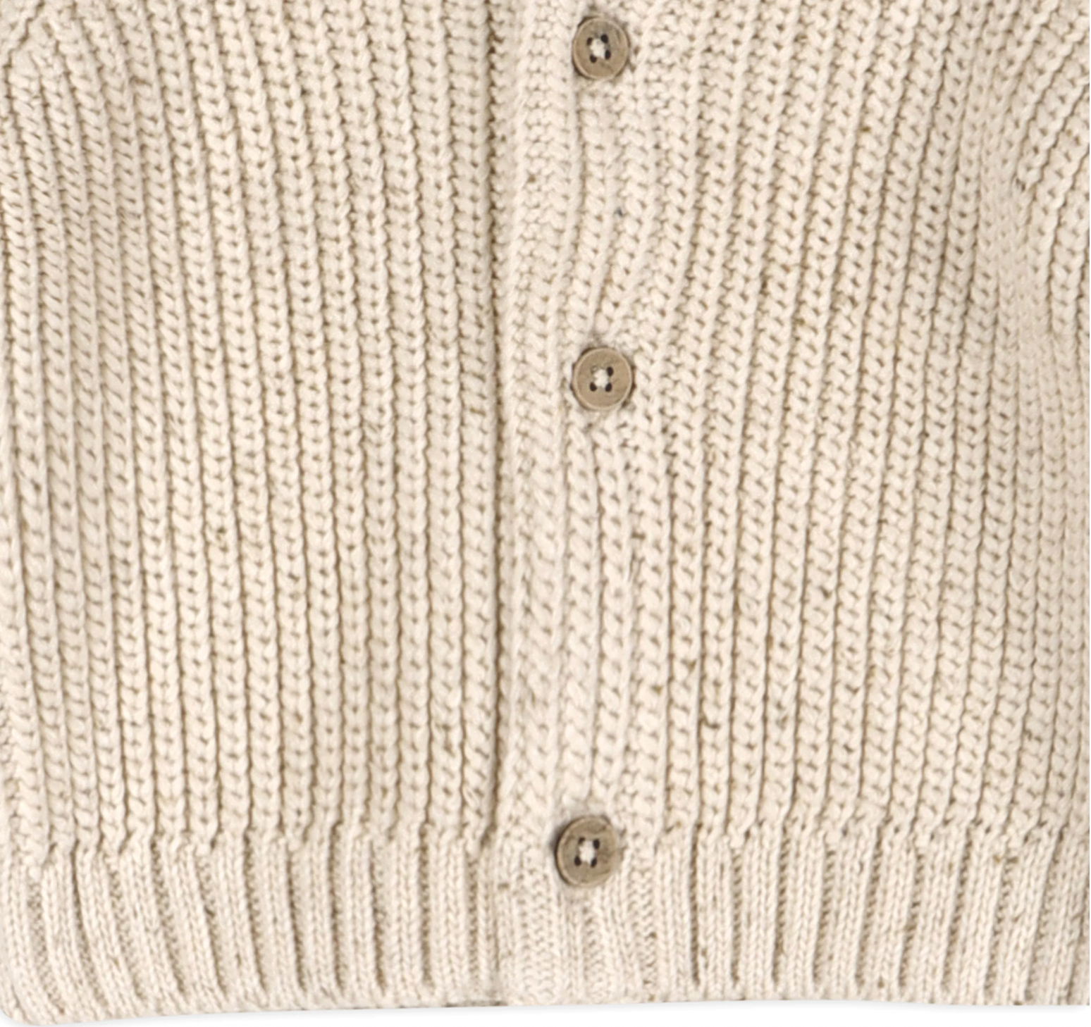 100% organic cotton long-sleeve baby cardigan sweater, chunky knit with front button opening.