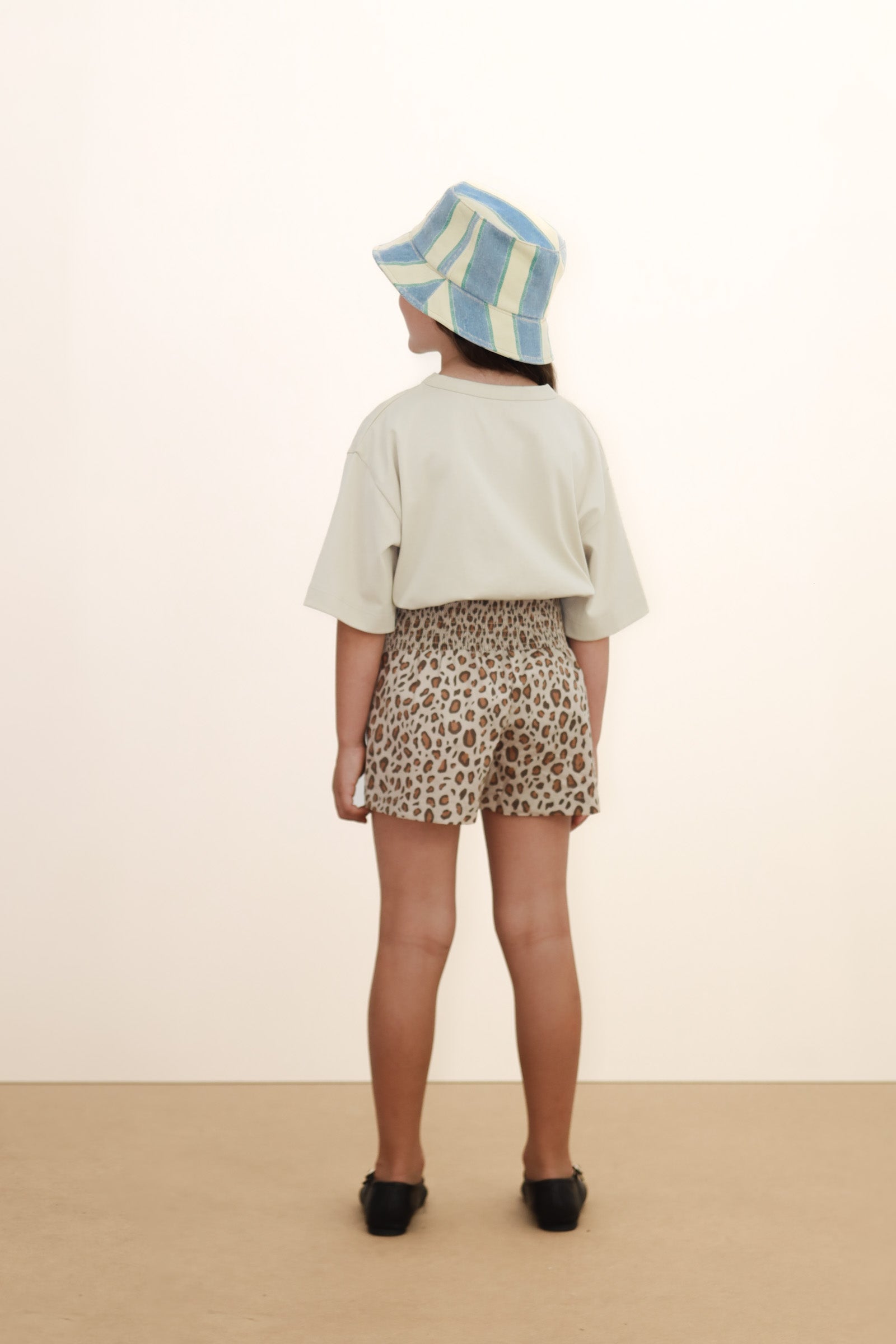 These short shorts with an Animal Print on a dark vanilla base combine style and comfort in an easy-to-wear design. They feature a smocked waistband for a comfortable fit and a small embroidered brand logo at the bottom for a distinctive touch. Perfect for a fun, laid-back look on warm, sunny days.