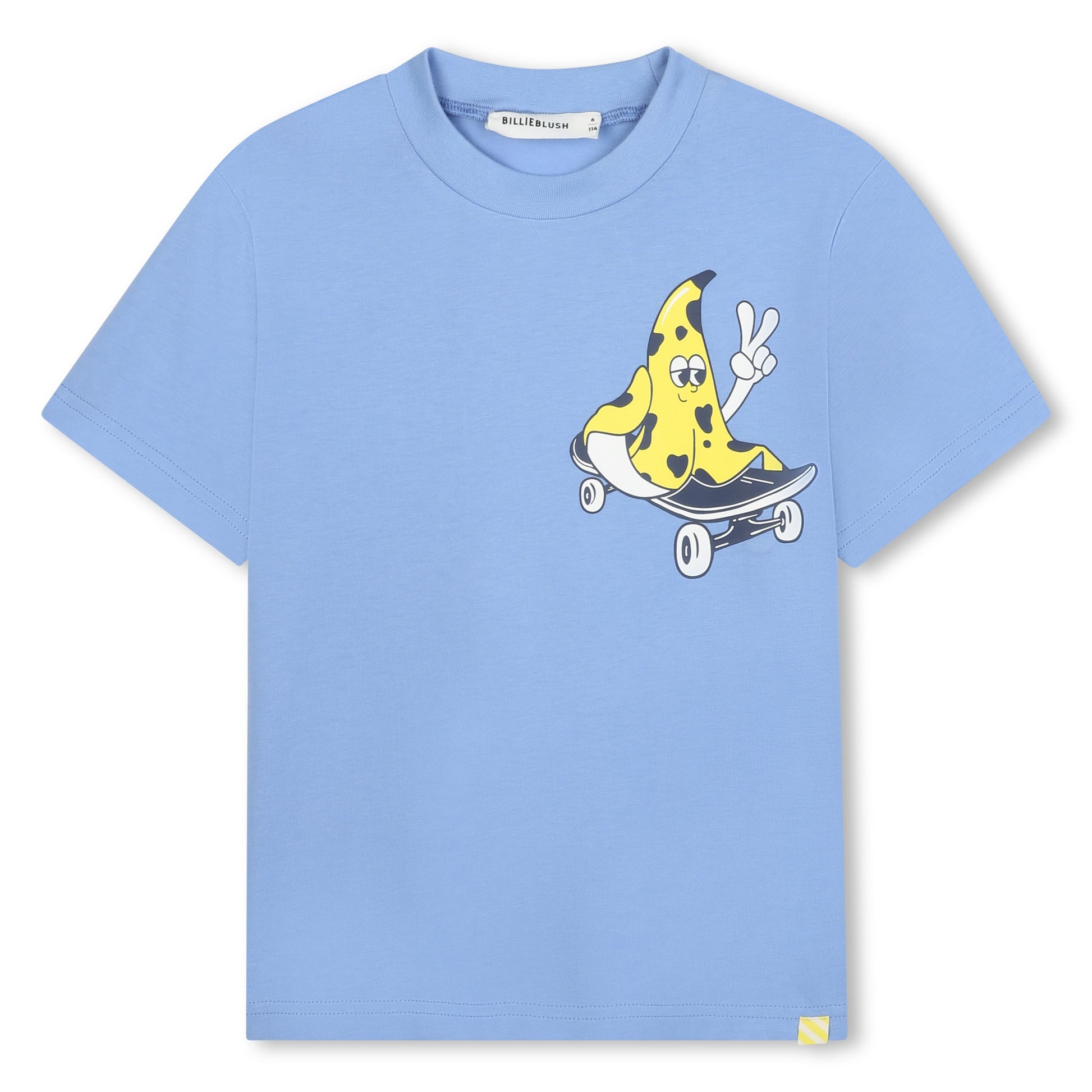 Blue T-shirt for boys by Billieblush, featuring a playful skateboarding banana graphic on the front and back. Designed with a comfortable fit, it is made in soft cotton jersey, ideal for casual wear.