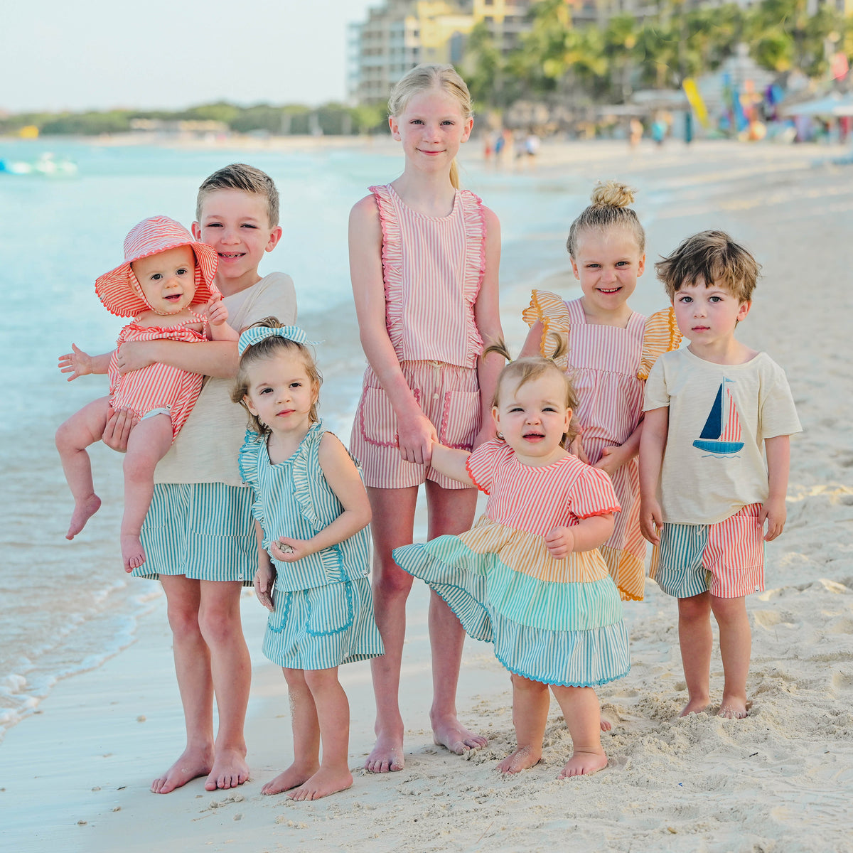 Get ready for some serious twirls in the oh baby! Cabana Amelia Ruffle Sleeve Dress. With its playful ruffle sleeves and faded pink color, this dress is perfect for any summer adventure. Let your little one rock this dress and shine like the star they are! Available in infant, toddler, and girls sizes. Designed in Minnesota.