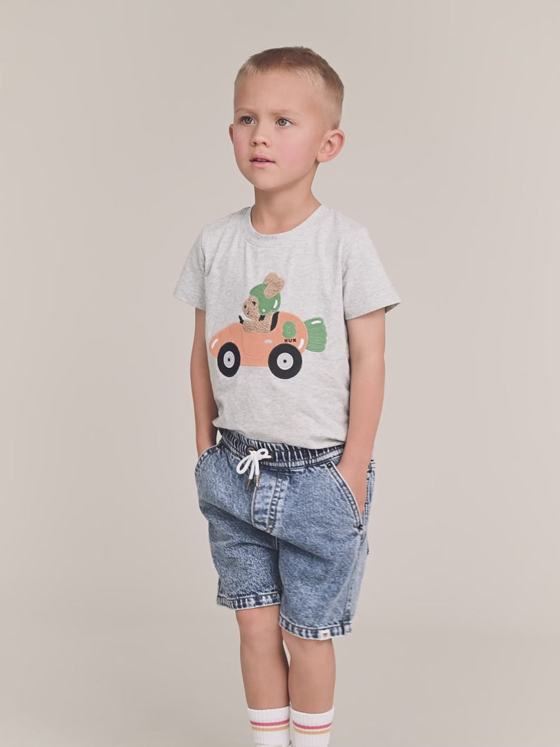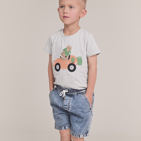 The perfect everyday tee, but make it Easter. This round neck t-shirt is made from buttery-soft organic cotton in a classic grey marle and features a carrot car bunny embroidered on the tummy. Baby sizes feature stainless steel shoulder snaps for quick changes.