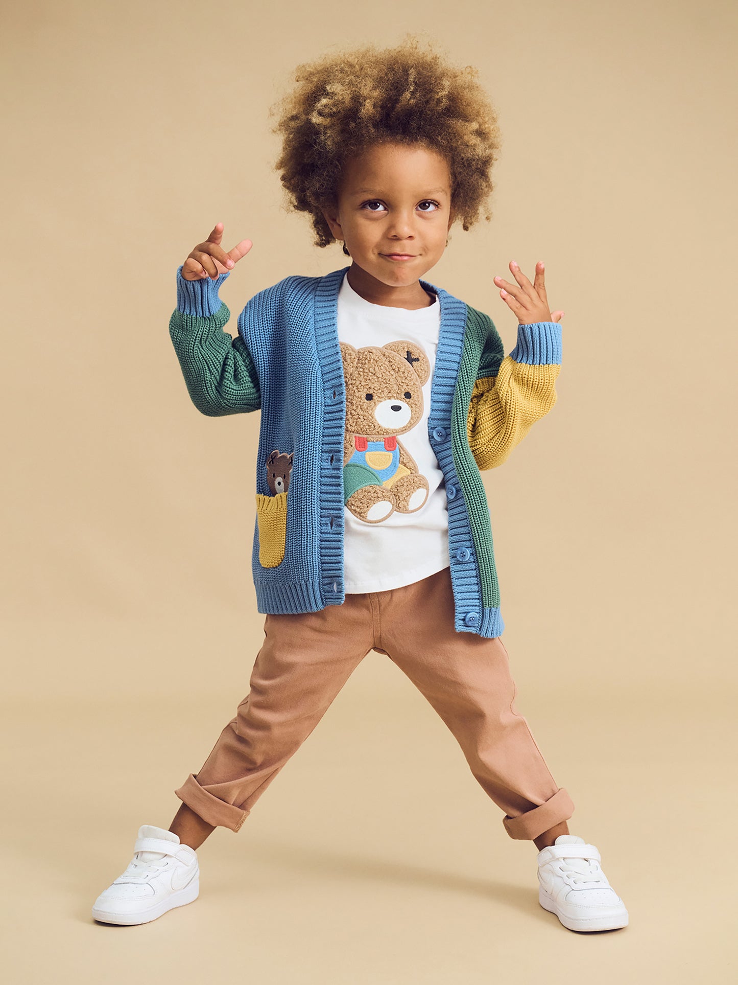 Brushed twill chino pant with peeping Huxbear patch at pocket