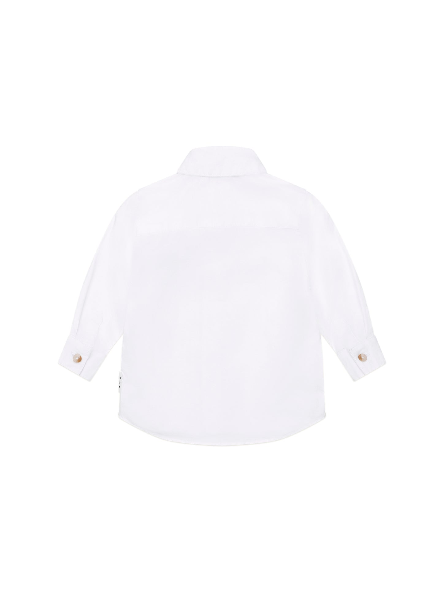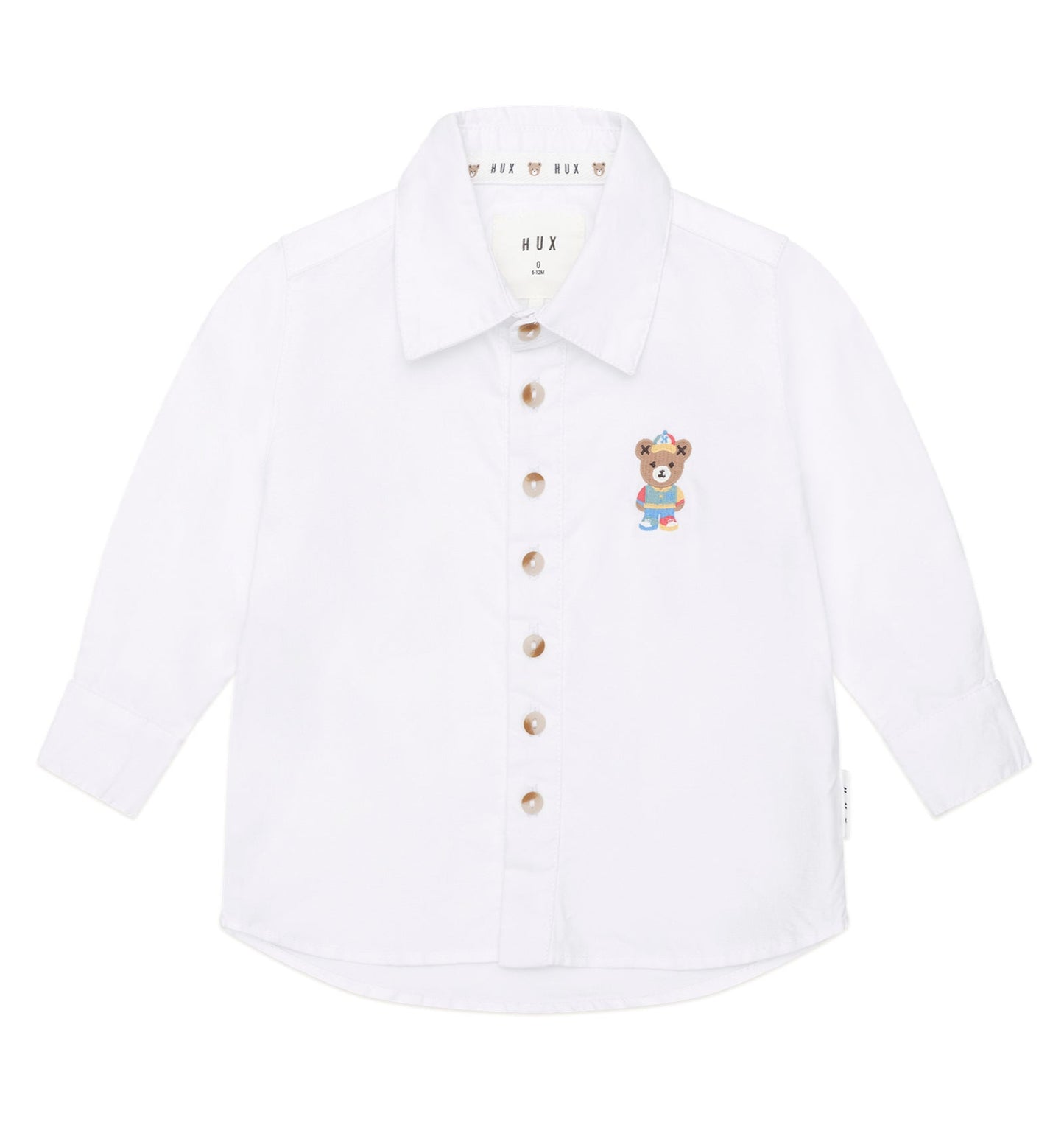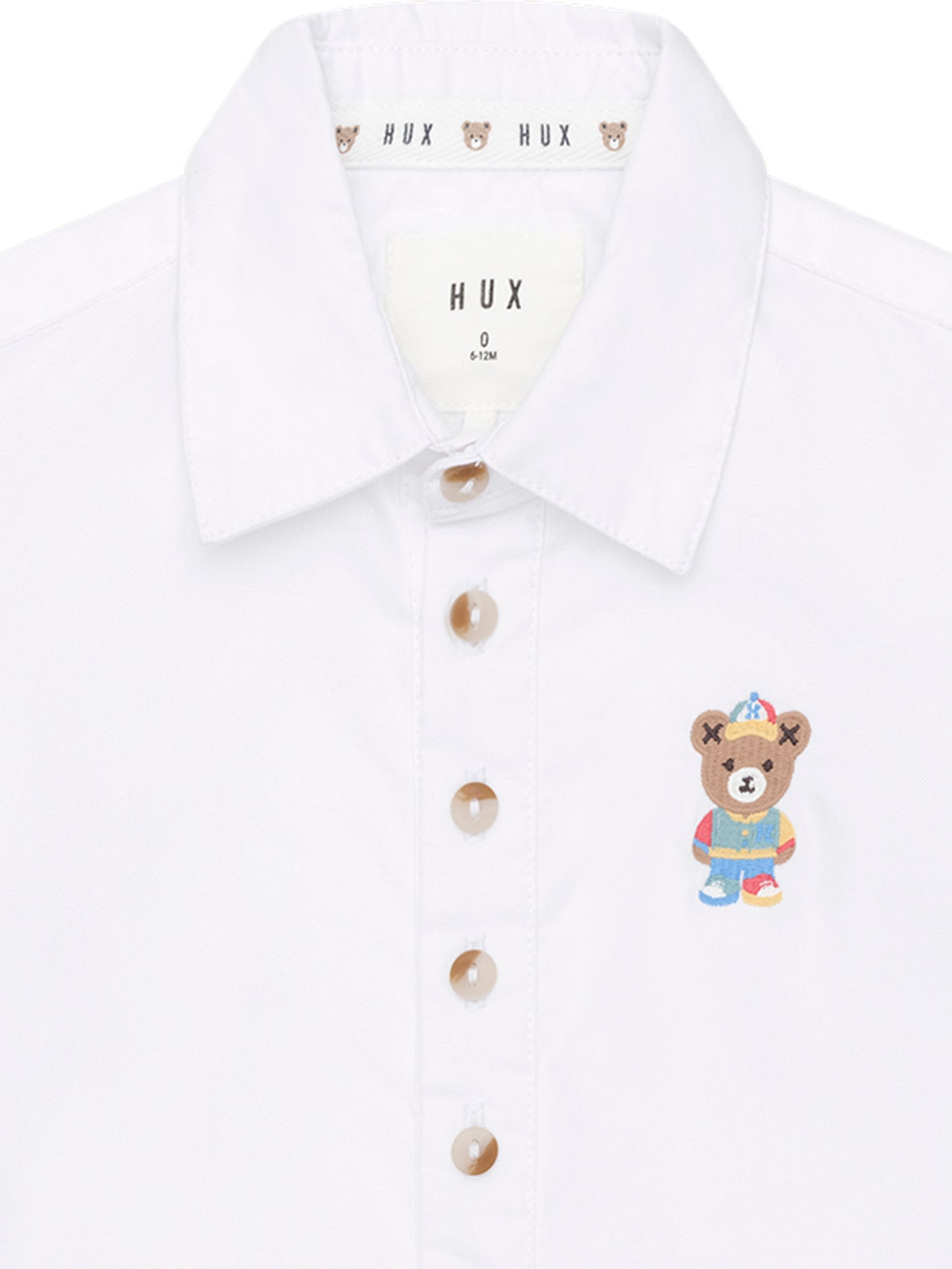 Their first ever white button down shirt. In a classic crisp white hue made from beautiful cotton with a relaxed casual fit. A timeless style, featuring a cute Huxbear embroidery twist.
