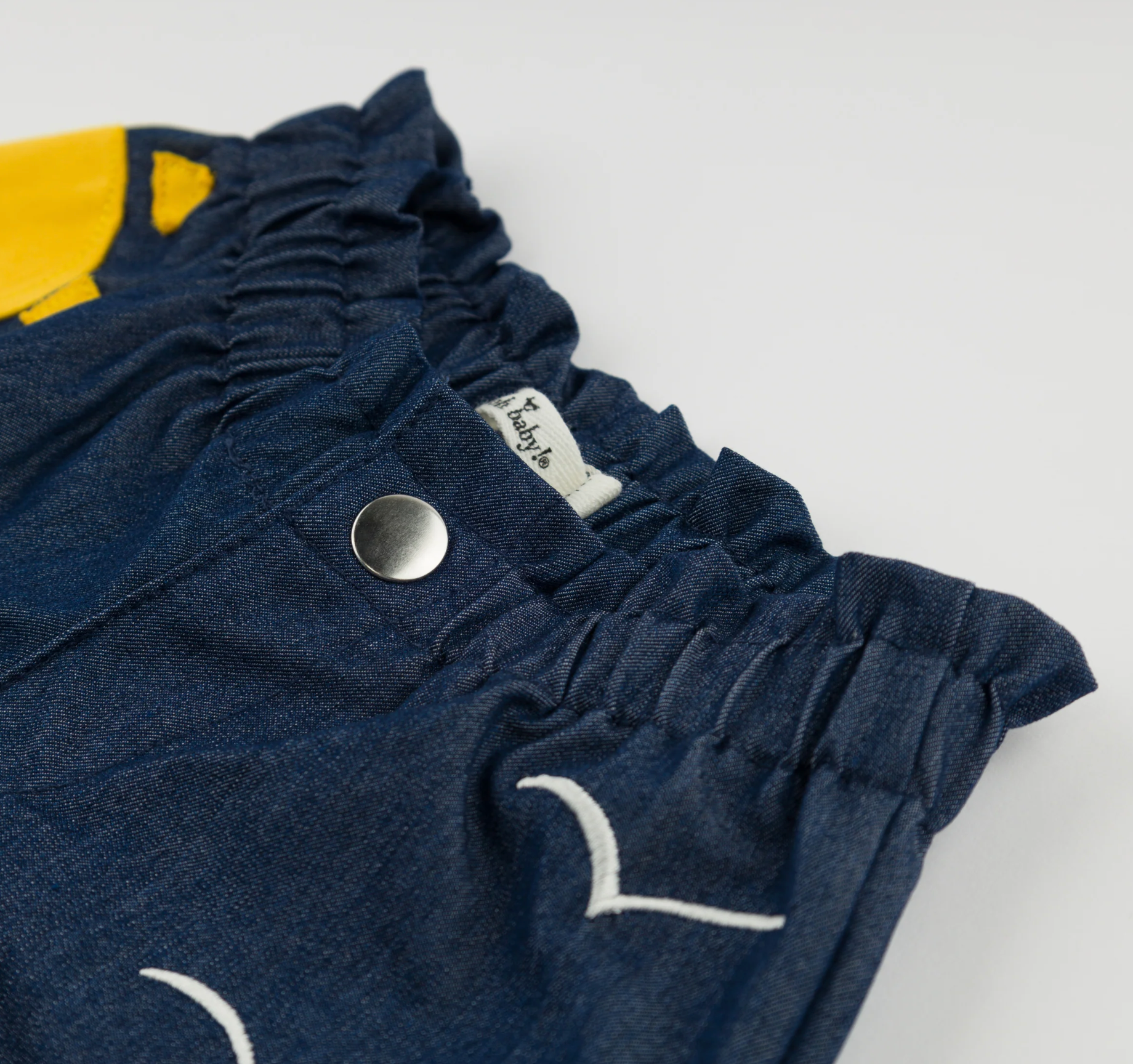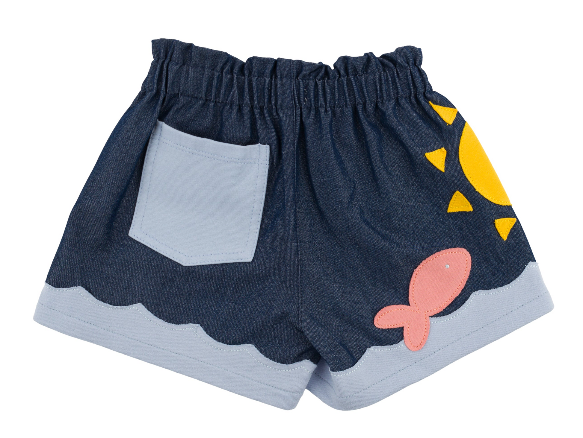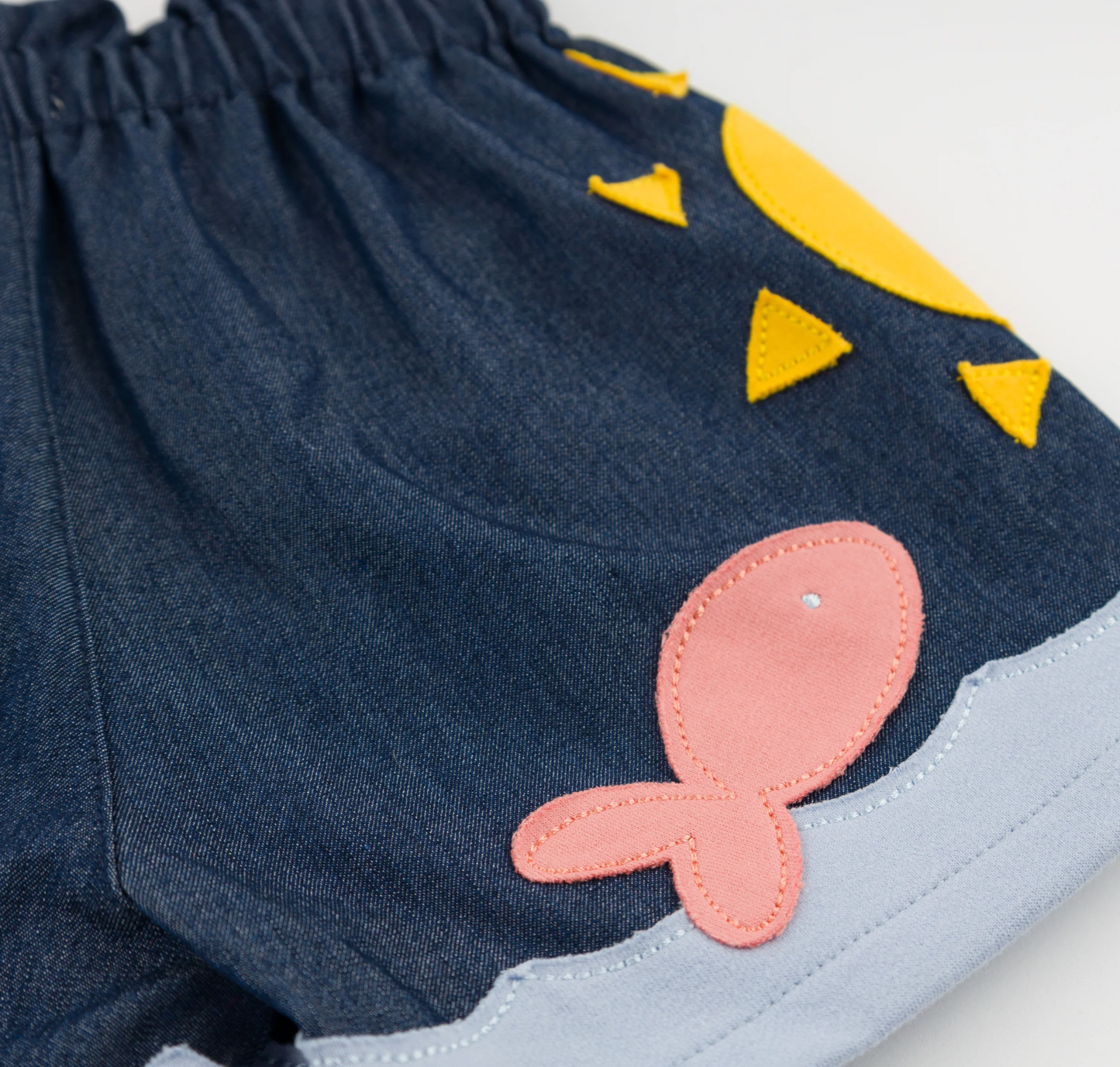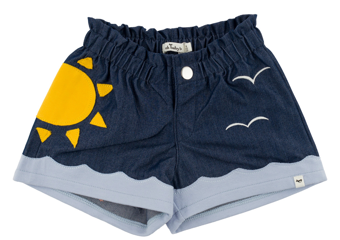 With a playful sunshine applique and comfortable elastic waist, every day will feel like a happy day at the beach in our Emerson Dark Wash Denim Shorts. The elastic waist provides the perfect fit, while the lyocell fabric keeps you cool and comfortable. Available in infant, toddler and girls sizes. Designed in Minnesota.