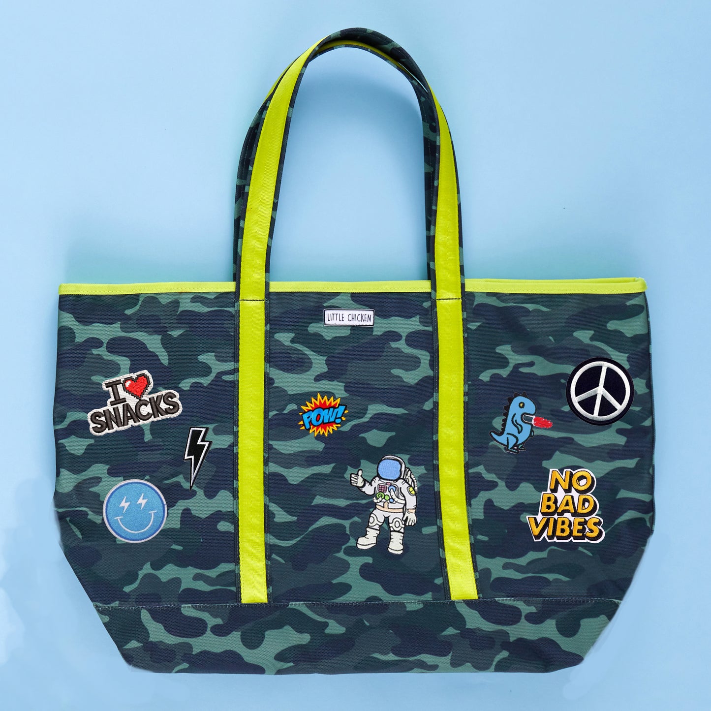 Let your kids explore in style with this Green Camo Weekender Bag - a 3 piece set complete with custom patches. A perfect blend of fun and utility!