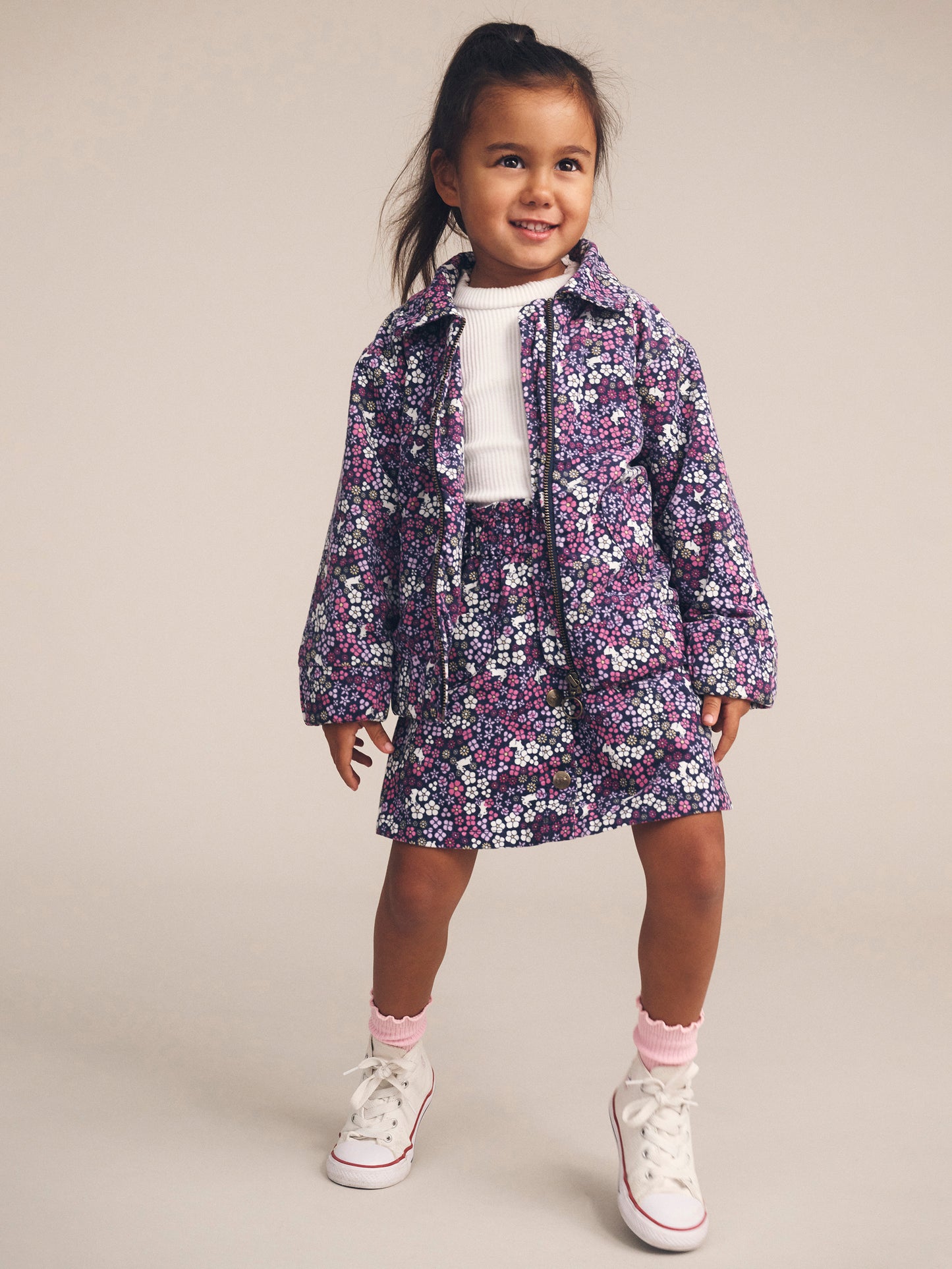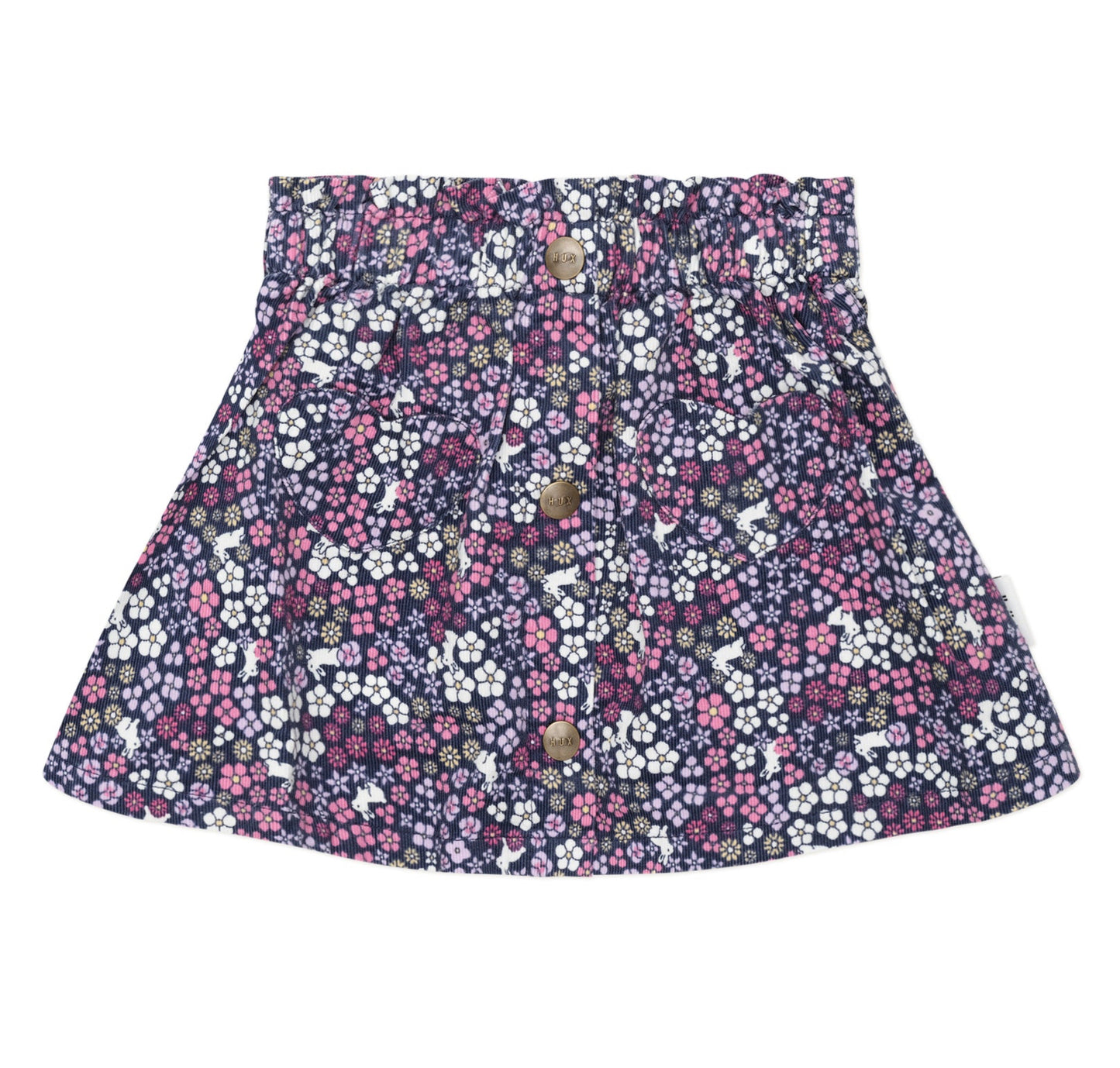 A mini for your mini. This 90s style floral skirt is made from a super soft, lightweight cotton cord. It features sweetheart-shaped front pockets and a soft, stretchy waistband to keep tummies comfy all day long. Wear it over tights or on its own, for play dates or special occasions.