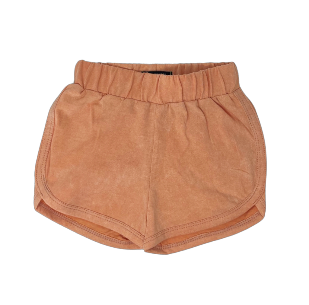 Brighten up your little one's summer wardrobe with these groovy Orange Mineral Wash Short Shorts. Perfect for kids who like to keep things cool and playful.