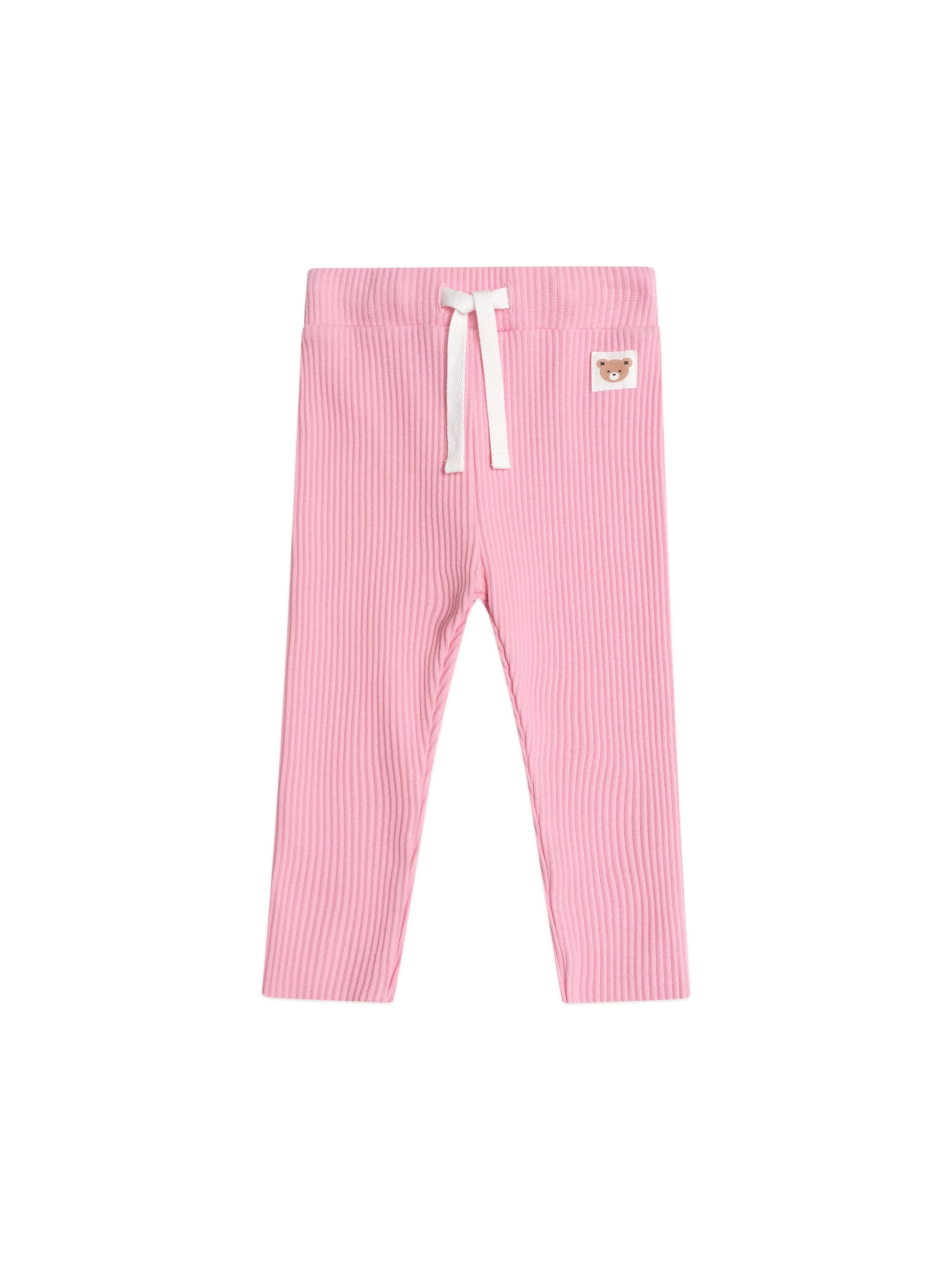 A versatile layering legging in strawberry pink. These comfy pants are made from extra thick ribbed cotton to keep little bodies warm. They feature a soft yet stretchy waistband for ultimate tummy comfort and a drawstring closure for an adjustable fit. A true wardrobe essential.