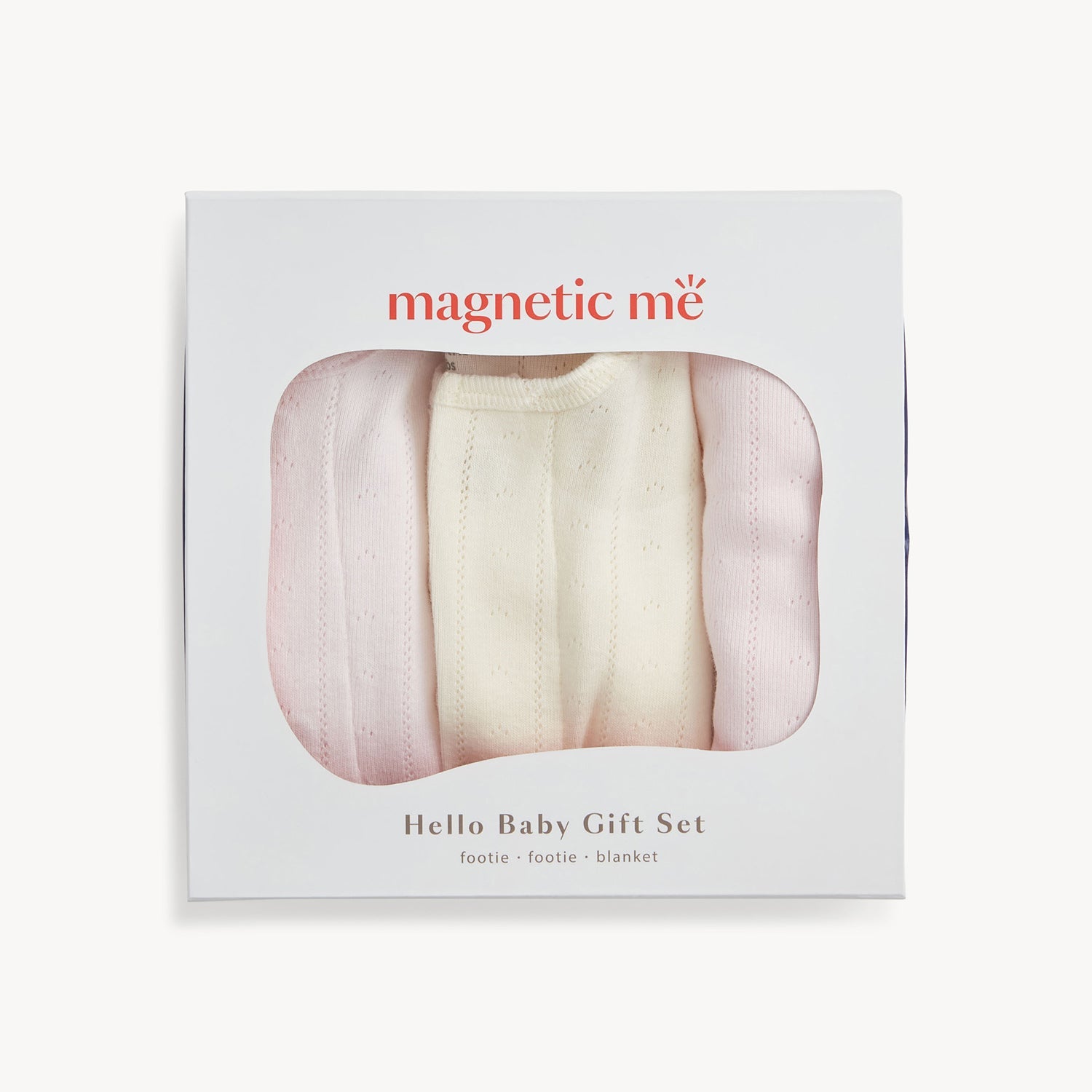 Our Hello Baby Gift Set gives parents the ultimate gift: time! The footie features magnetic closures that open and close easily, making dressing and diaper changes fast and fuss-free. In GOTS-certified 100% organic cotton with delicate pointelle stitching, the set also includes a matching blanket—it arrives in the sweetest gift box.