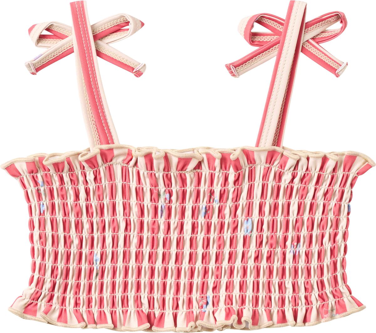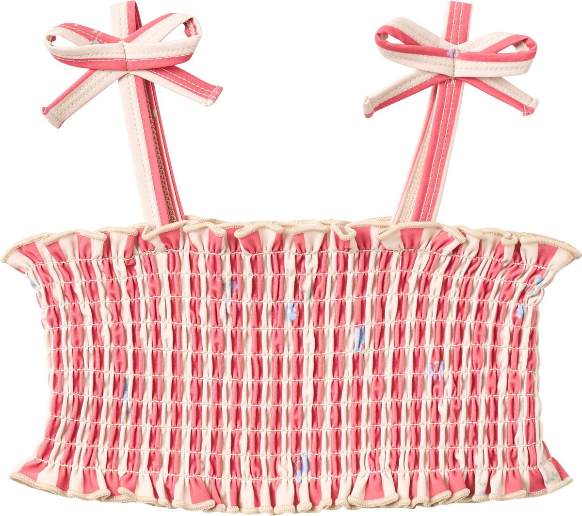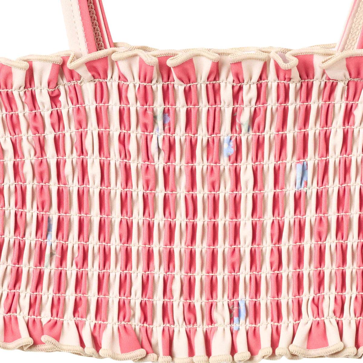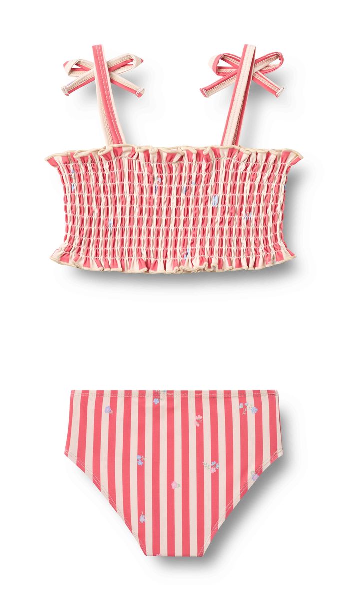 Cute printed bikini with smock details for children.