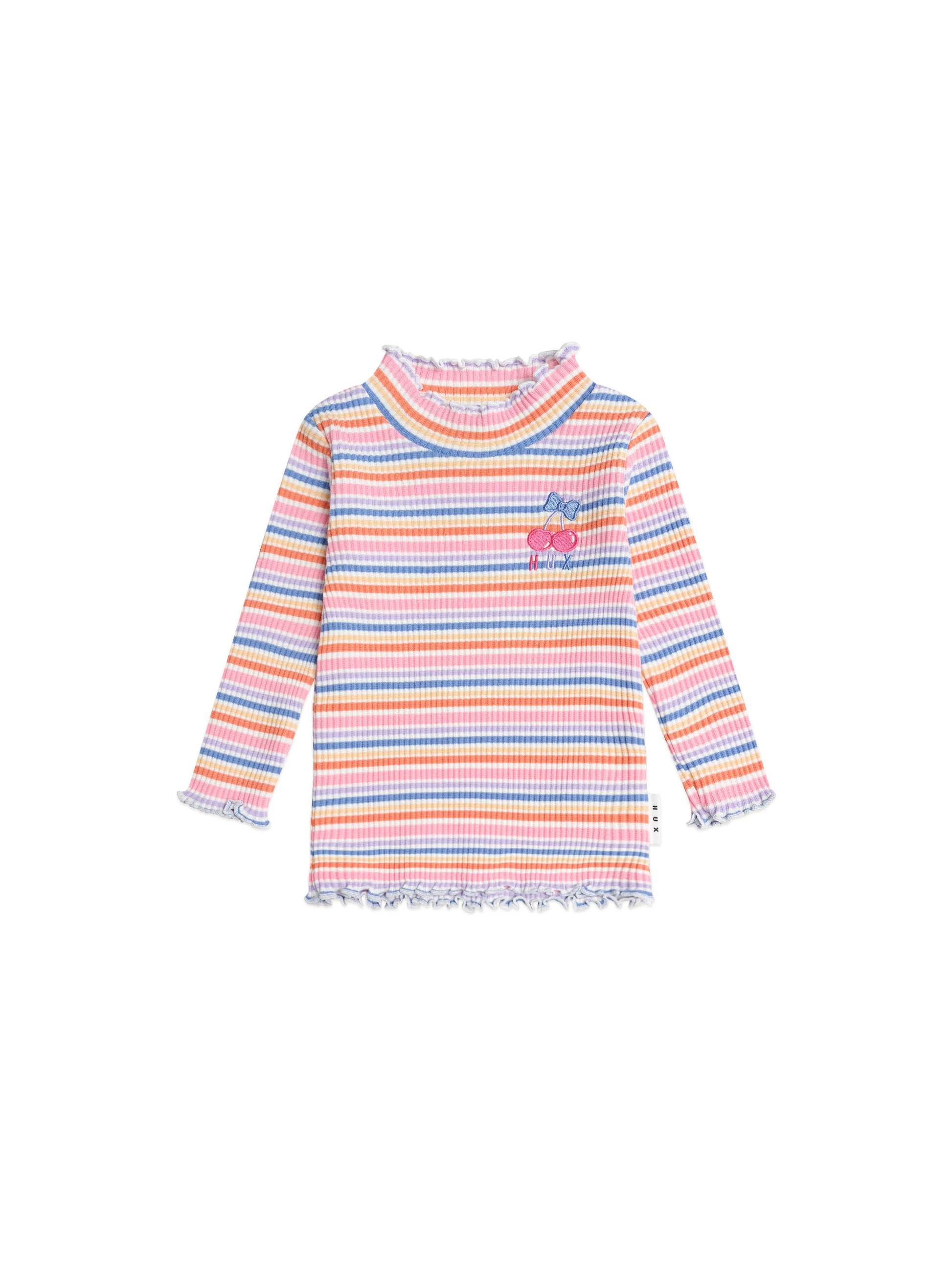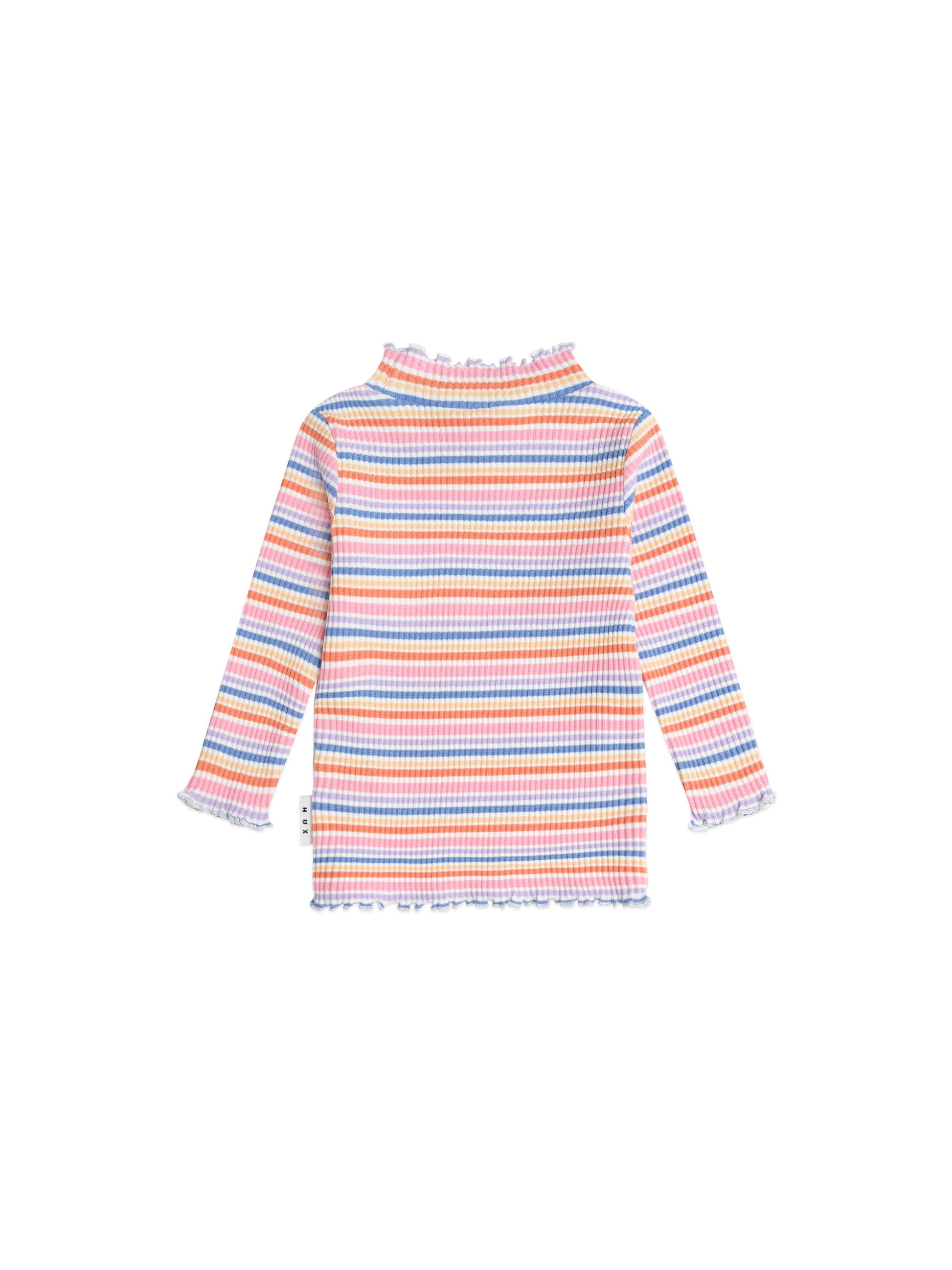A versatile layering piece in all the colours of the rainbow. This long-sleeved top is made from extra thick ribbed cotton to keep little bodies warm and features a sweet lettuce edge detail to complete the look. A true wardrobe essential.